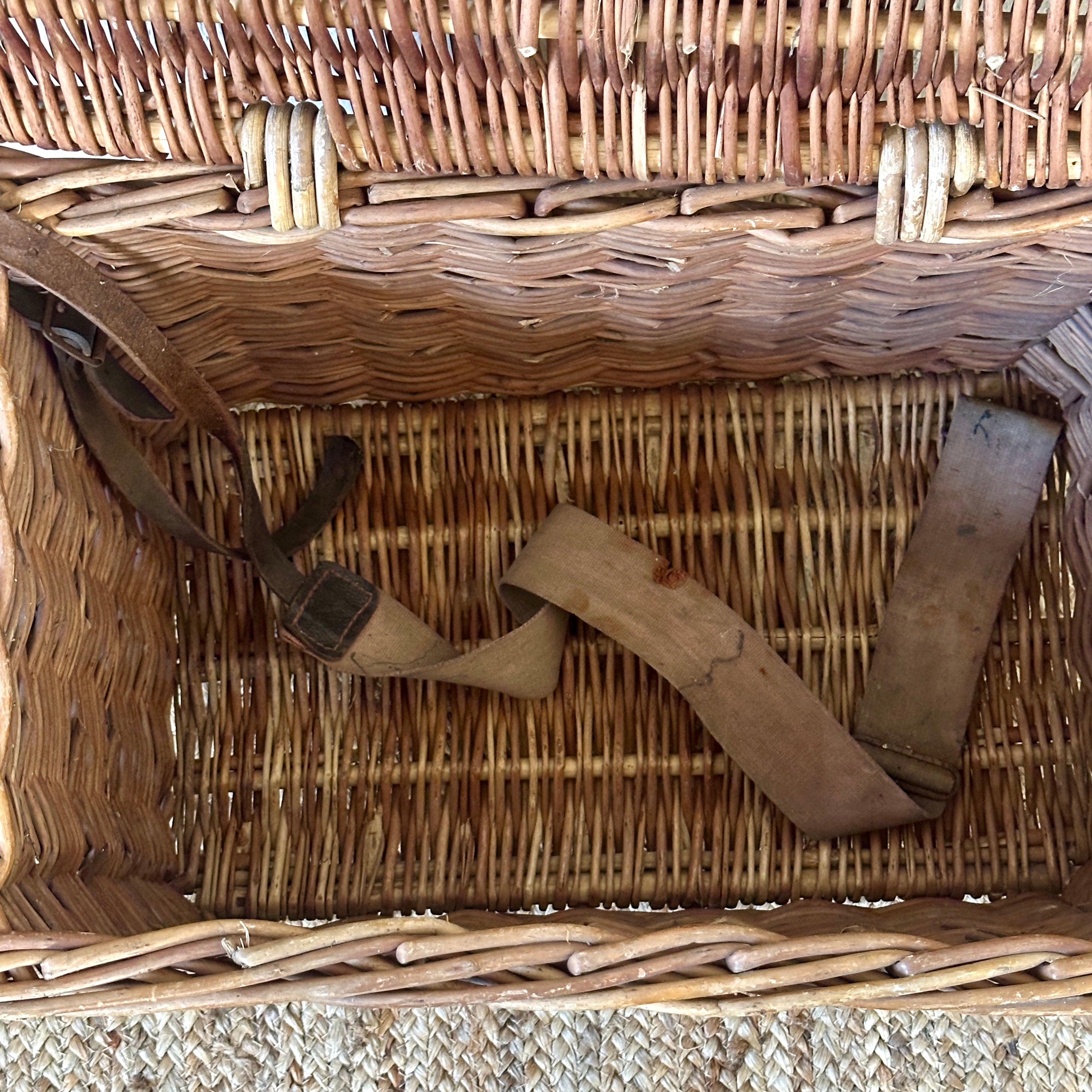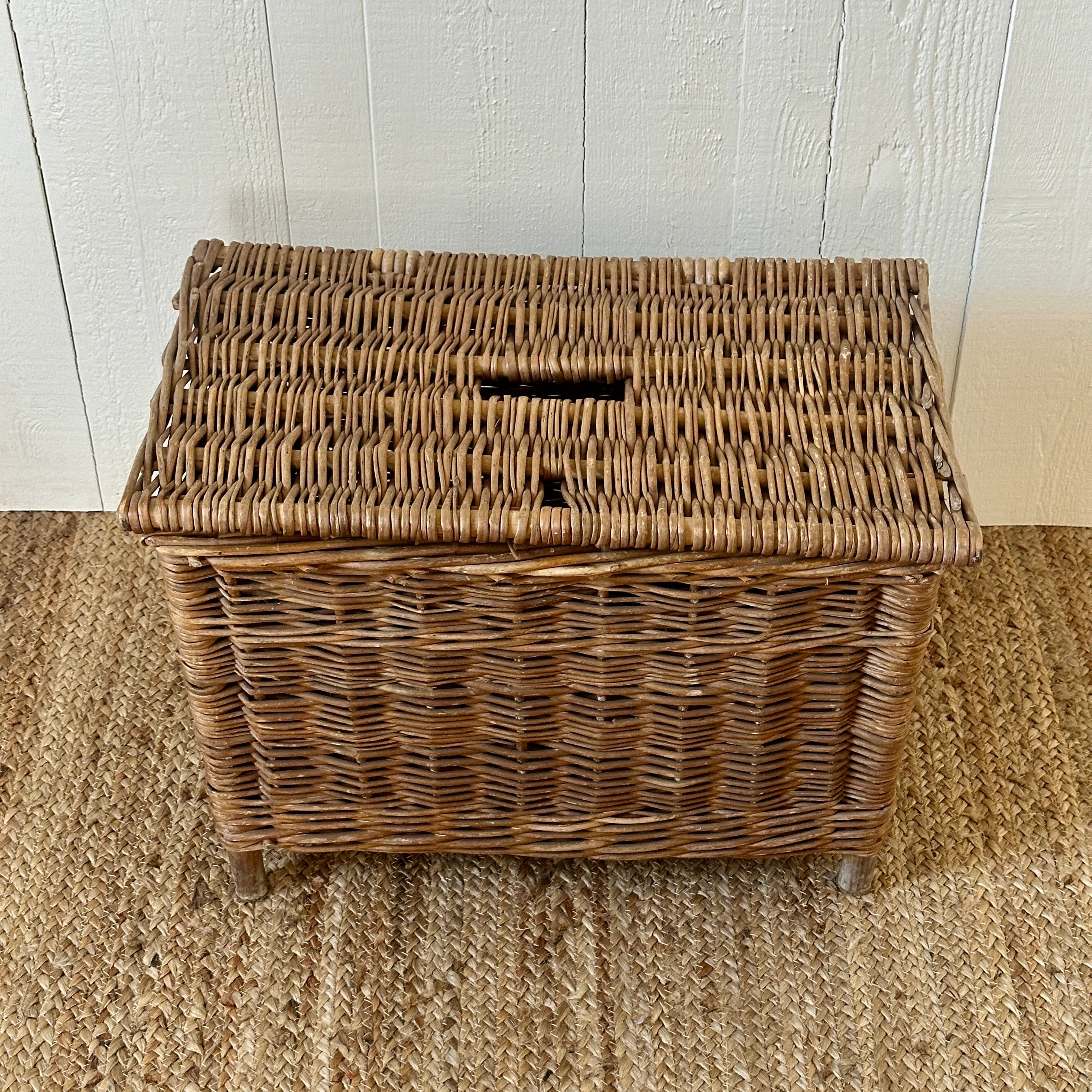 This rustic English fishing hamper will add plenty of character and texture to any room in your house. It's a nice little side table next to a chair with room to store your needlework or your pups toys!