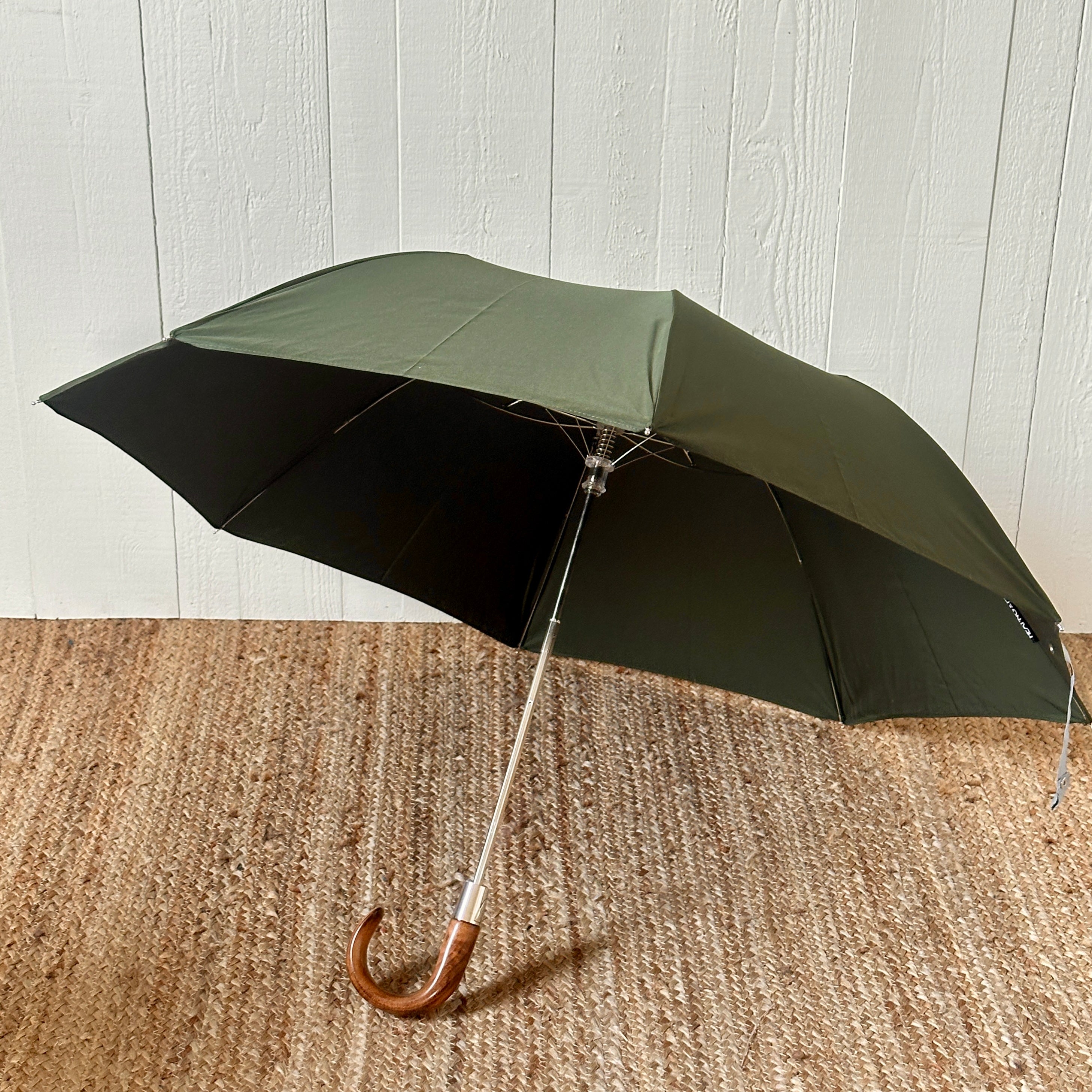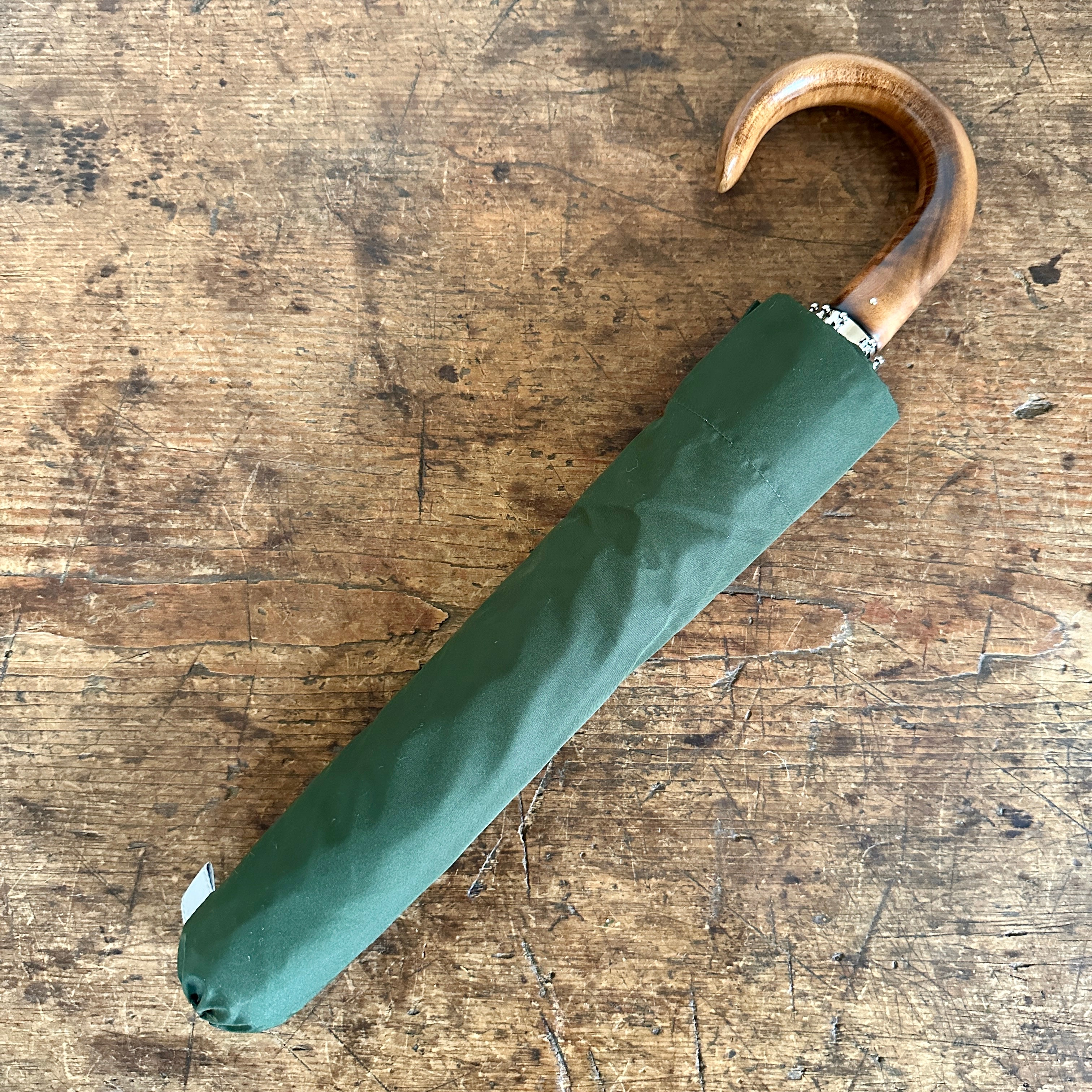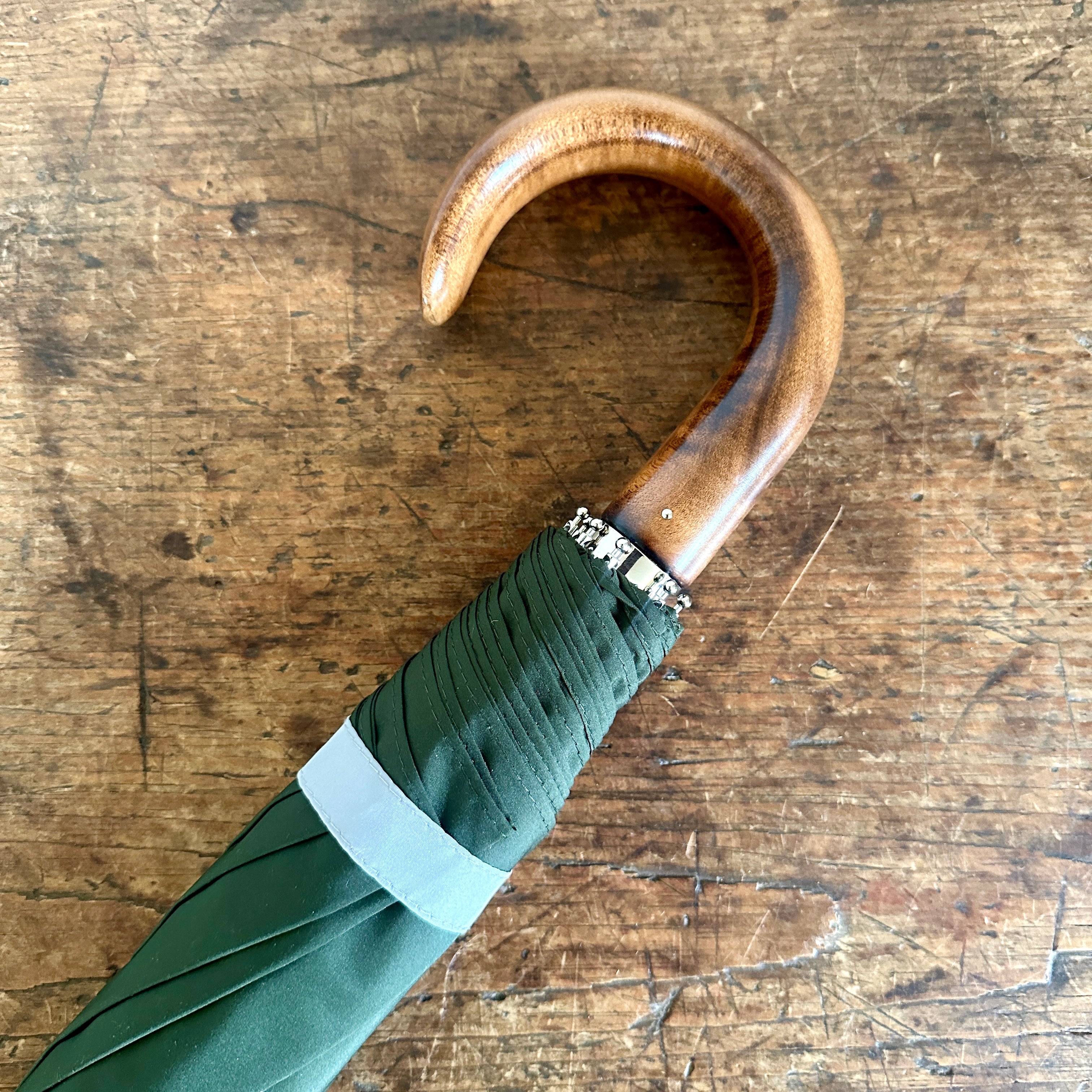 Treat yourself or someone special to this handsome folding umbrella lovingly made and assembled in England. The canopy is manually cut and each umbrella is hand finished. All components come from reliable and skilled suppliers. The scorched maple crook handle is made in the European Union while the polyester fabric is sourced from Japan.
