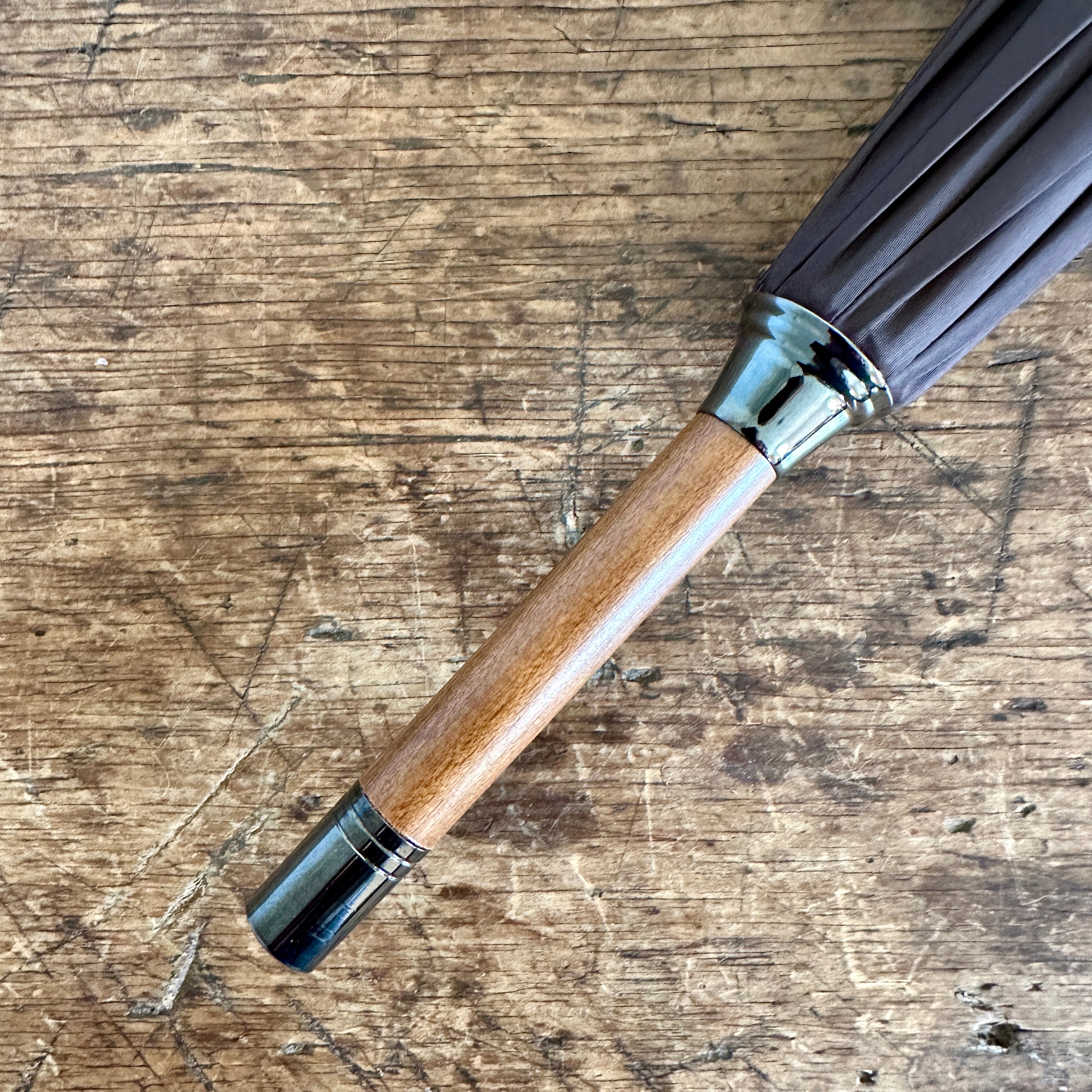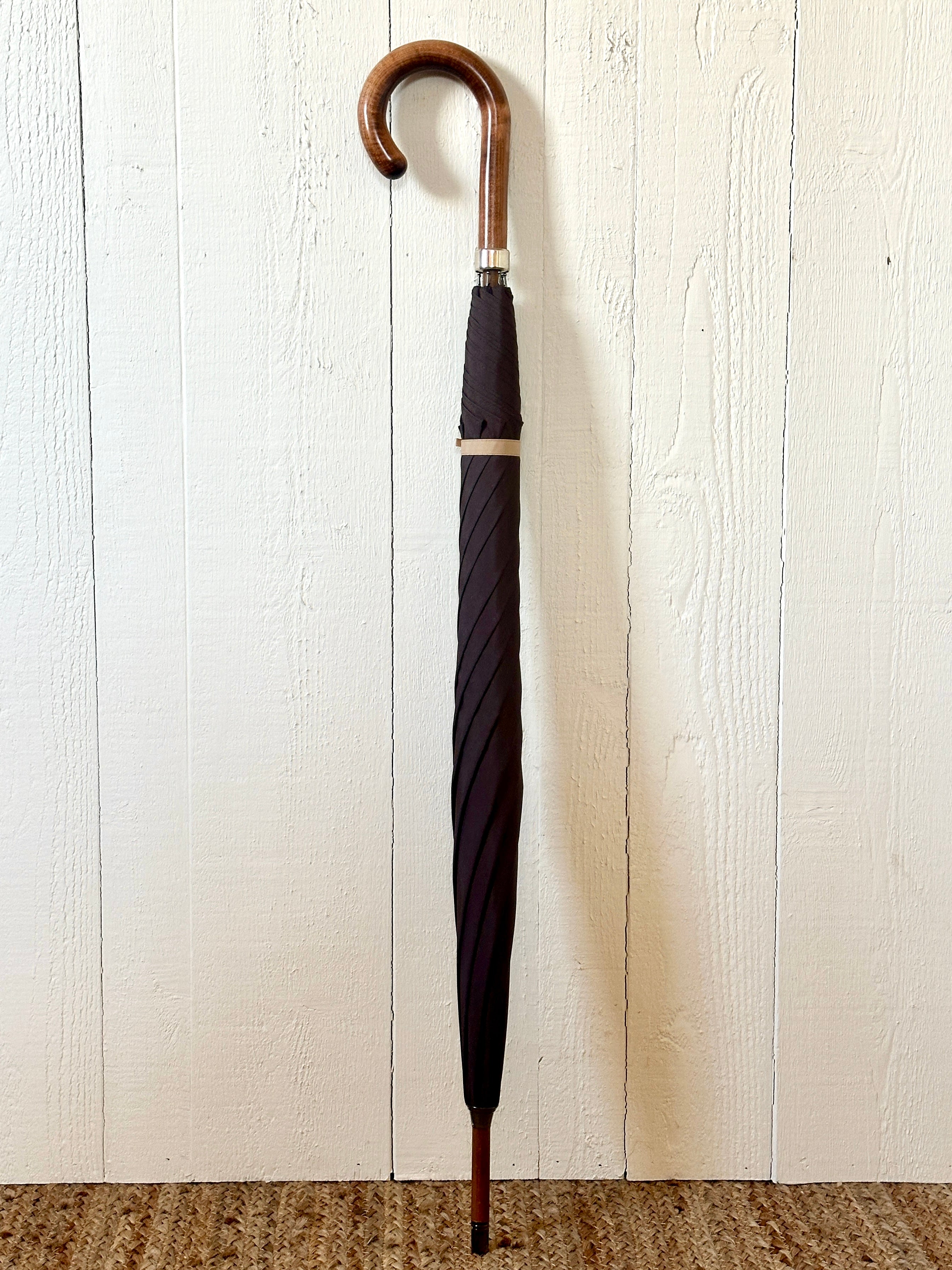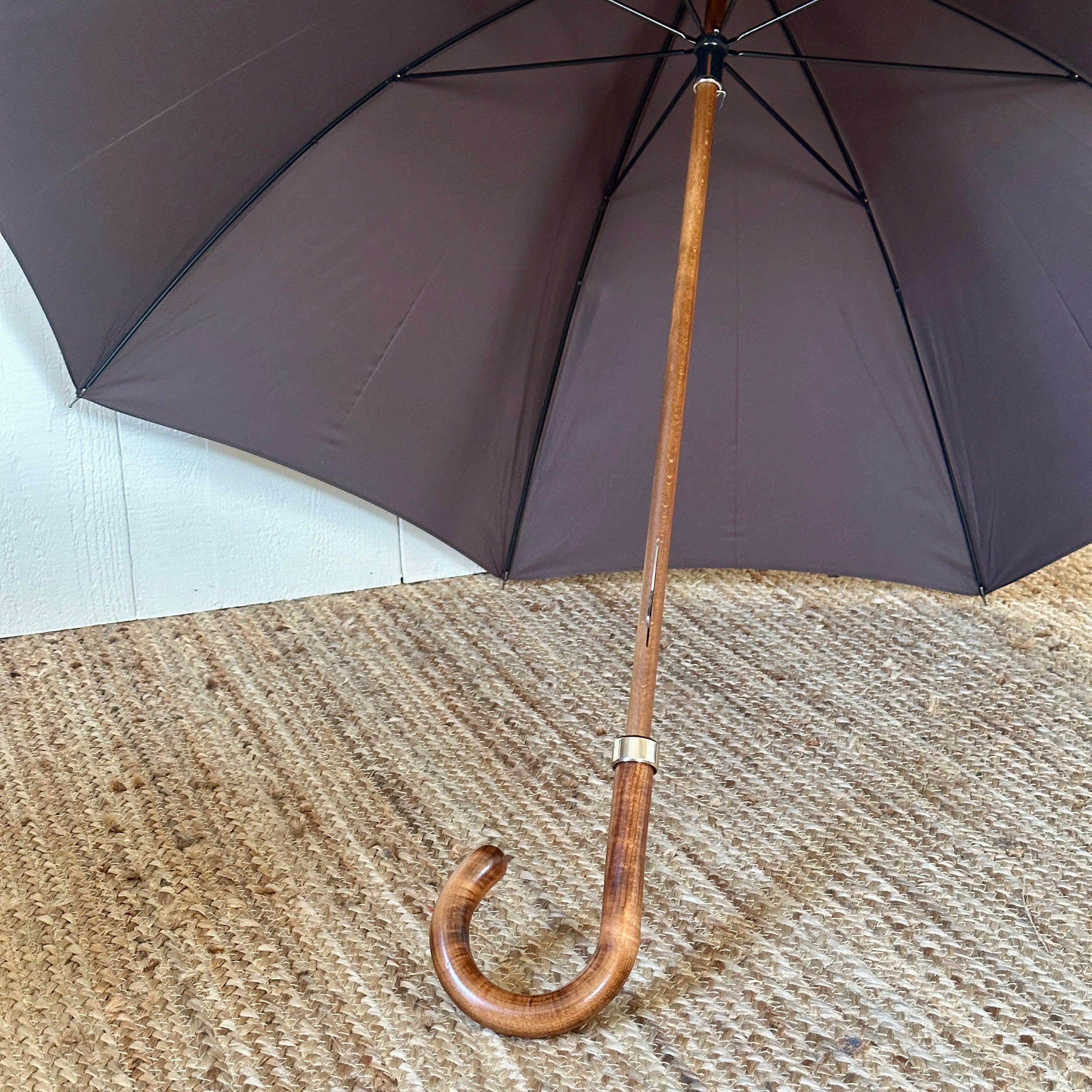Treat yourself or someone special to this handsome umbrella lovingly made and assembled in England. The canopy is manually cut and assembled over a hand-made frame with a solid beechwood shaft and a smooth scorched maple wood handle, giving this umbrella a luxurious feel with classic British styling.