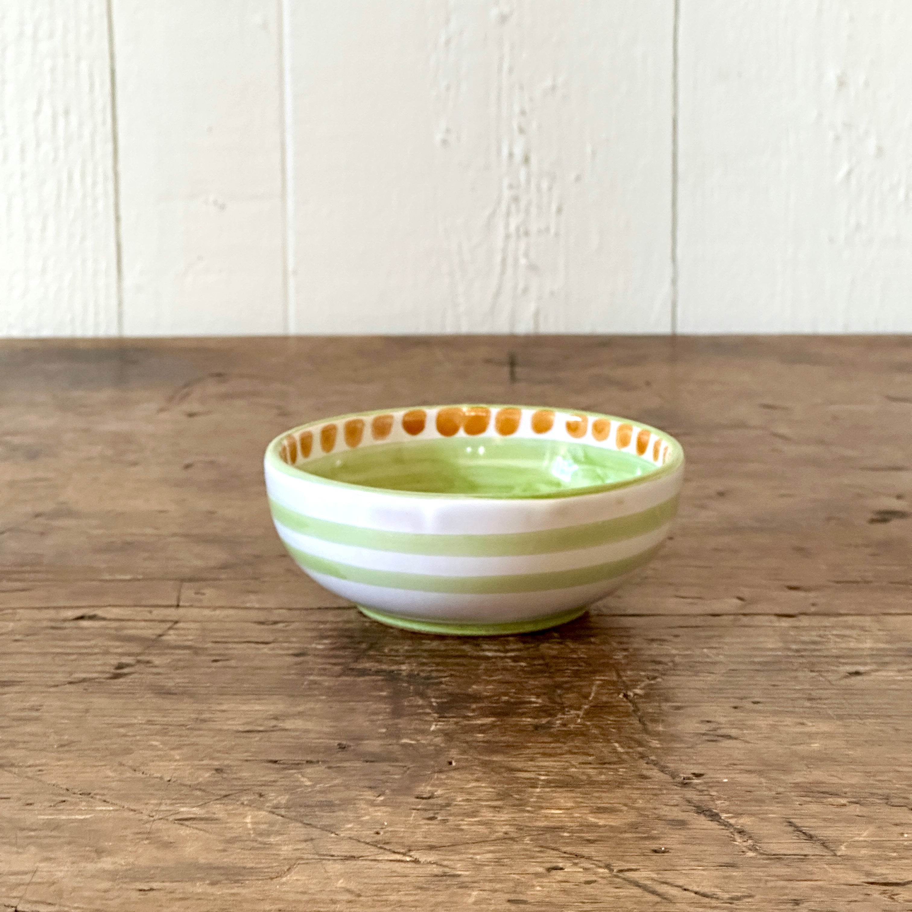 This colorful green and tangerine Gallina mini bowl features a hand-painted roosters. Mix and match with other Campagna patterns or with your existing tableware; the combinations are endless!