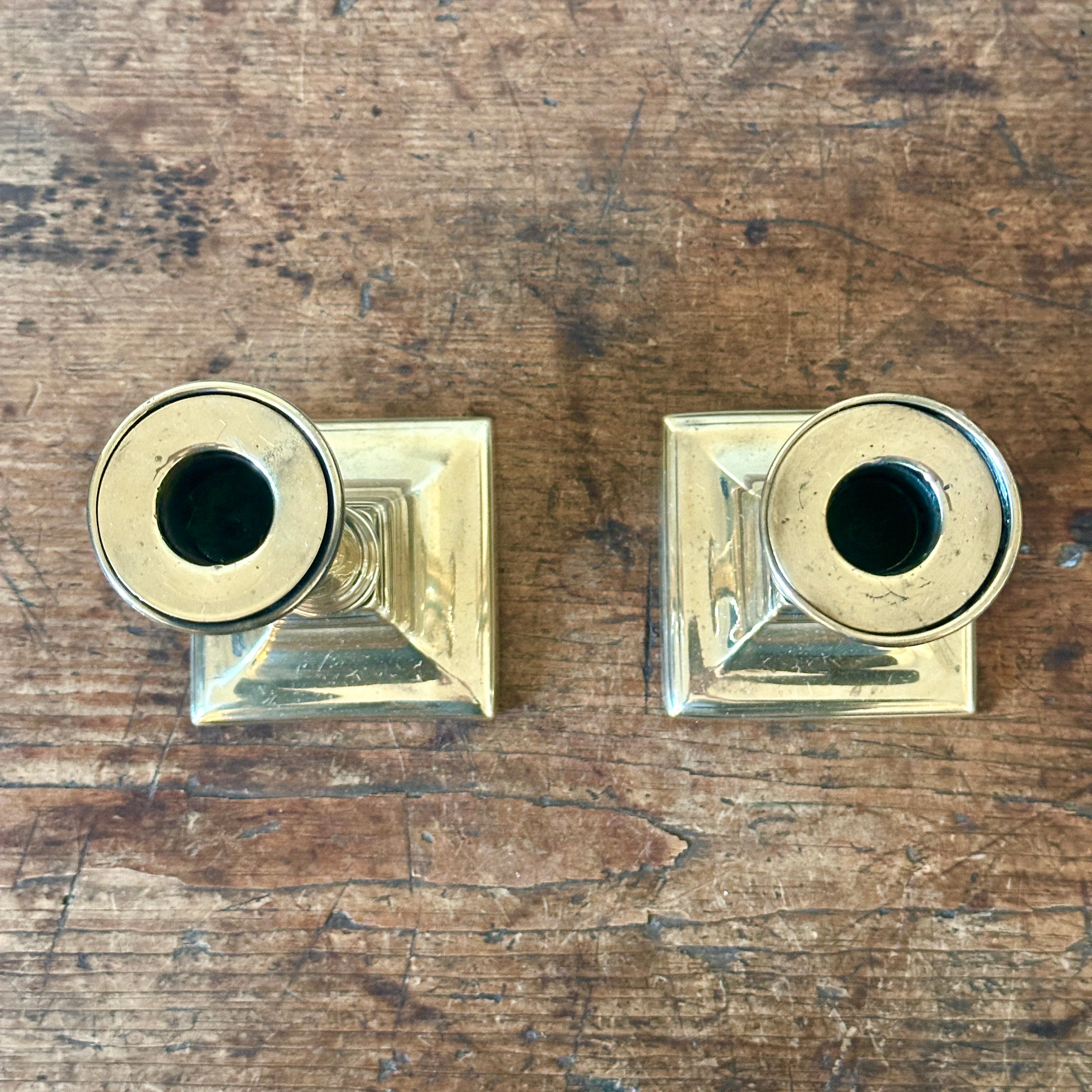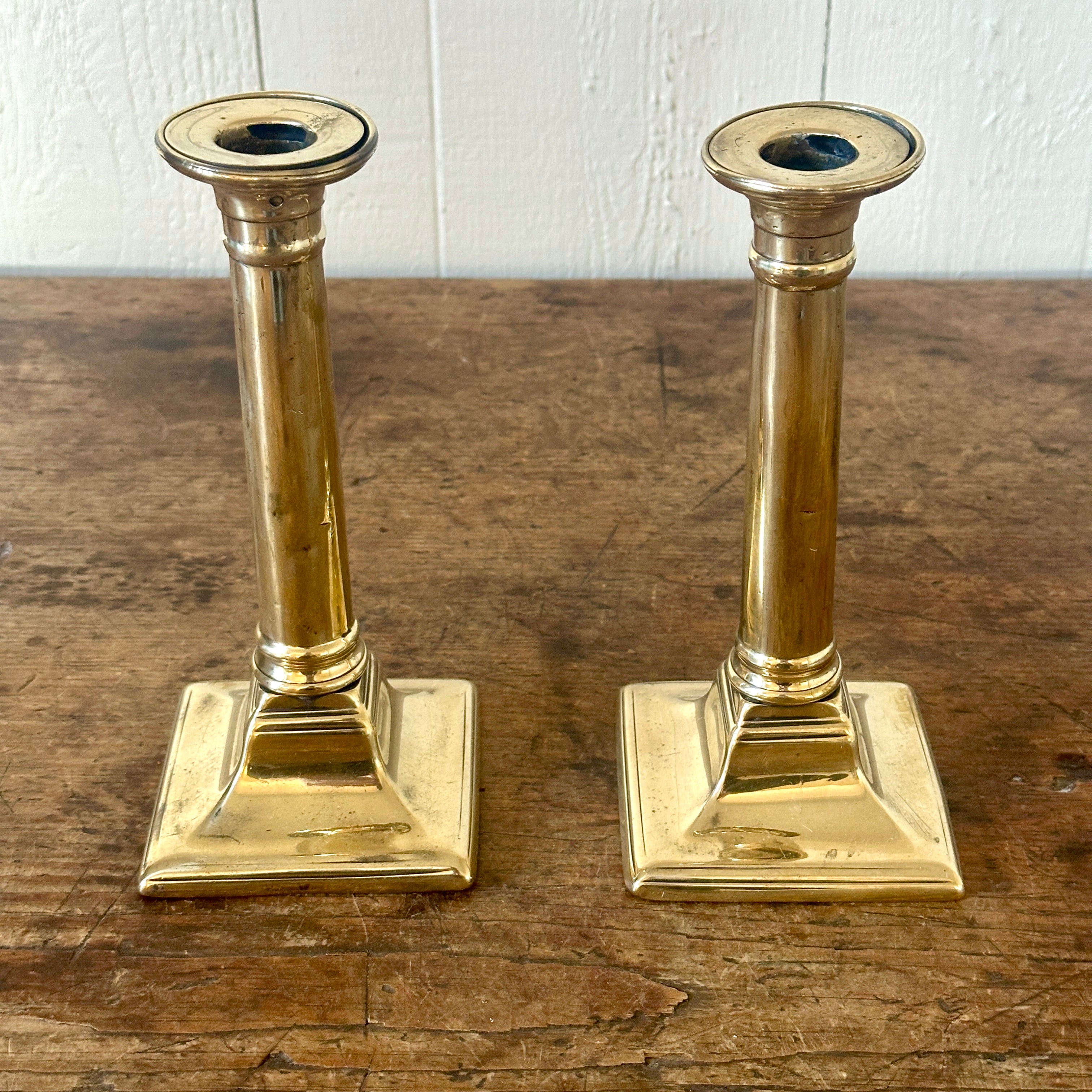 Is there any prettier light than candlelight? Classic brass candlesticks bring warmth and tradition to your table. This is a lovely pair of American candlesticks from the early 19th century.