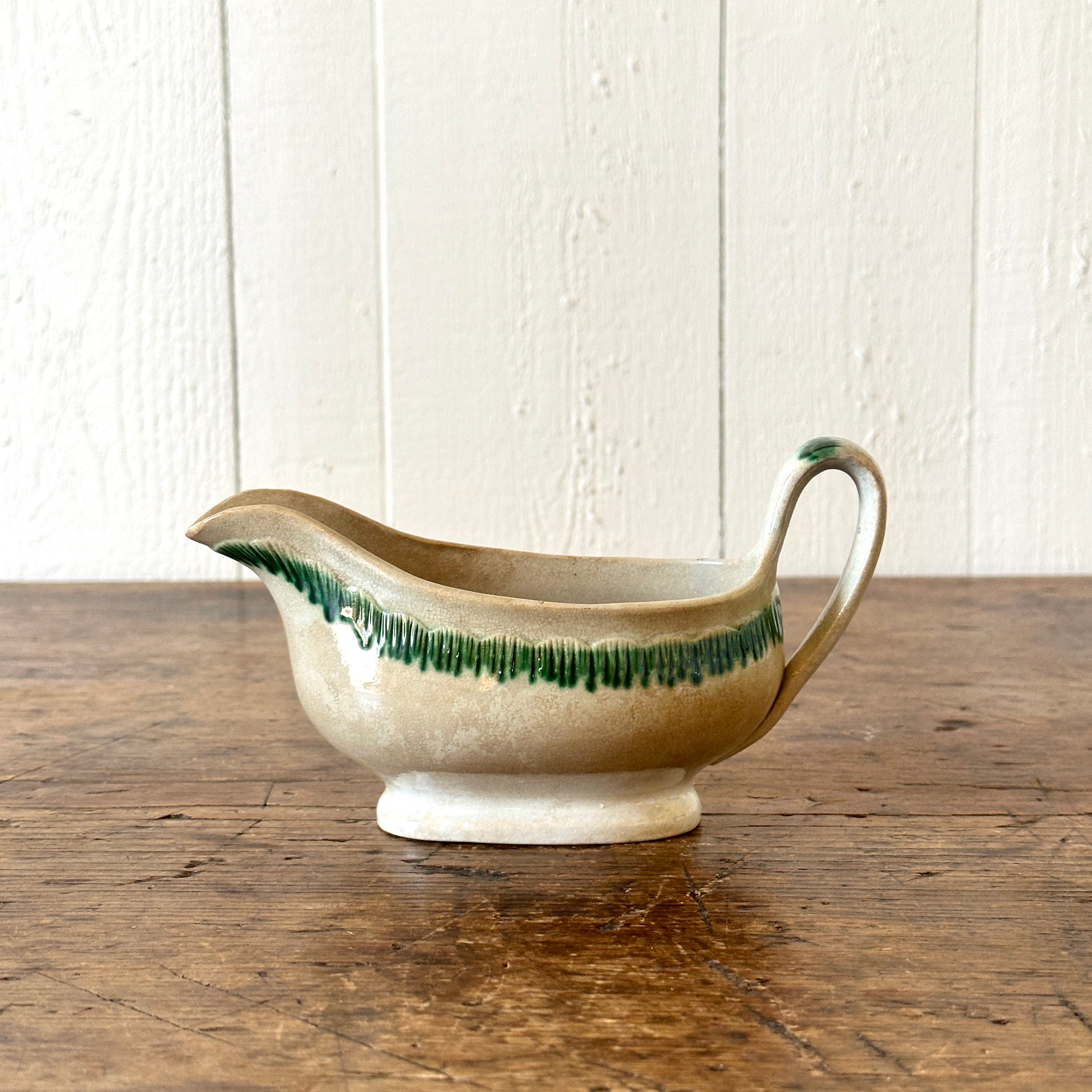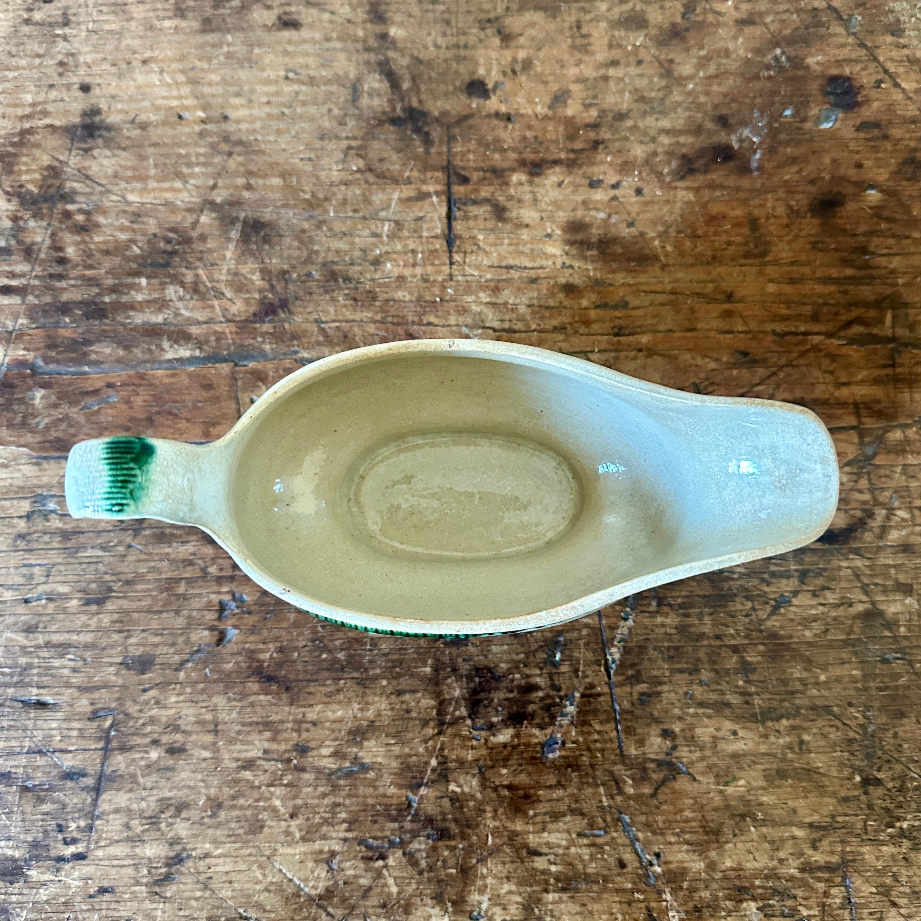 Rare Leeds green feather-edge pearlware sauce boat with staining. In excellent condition.