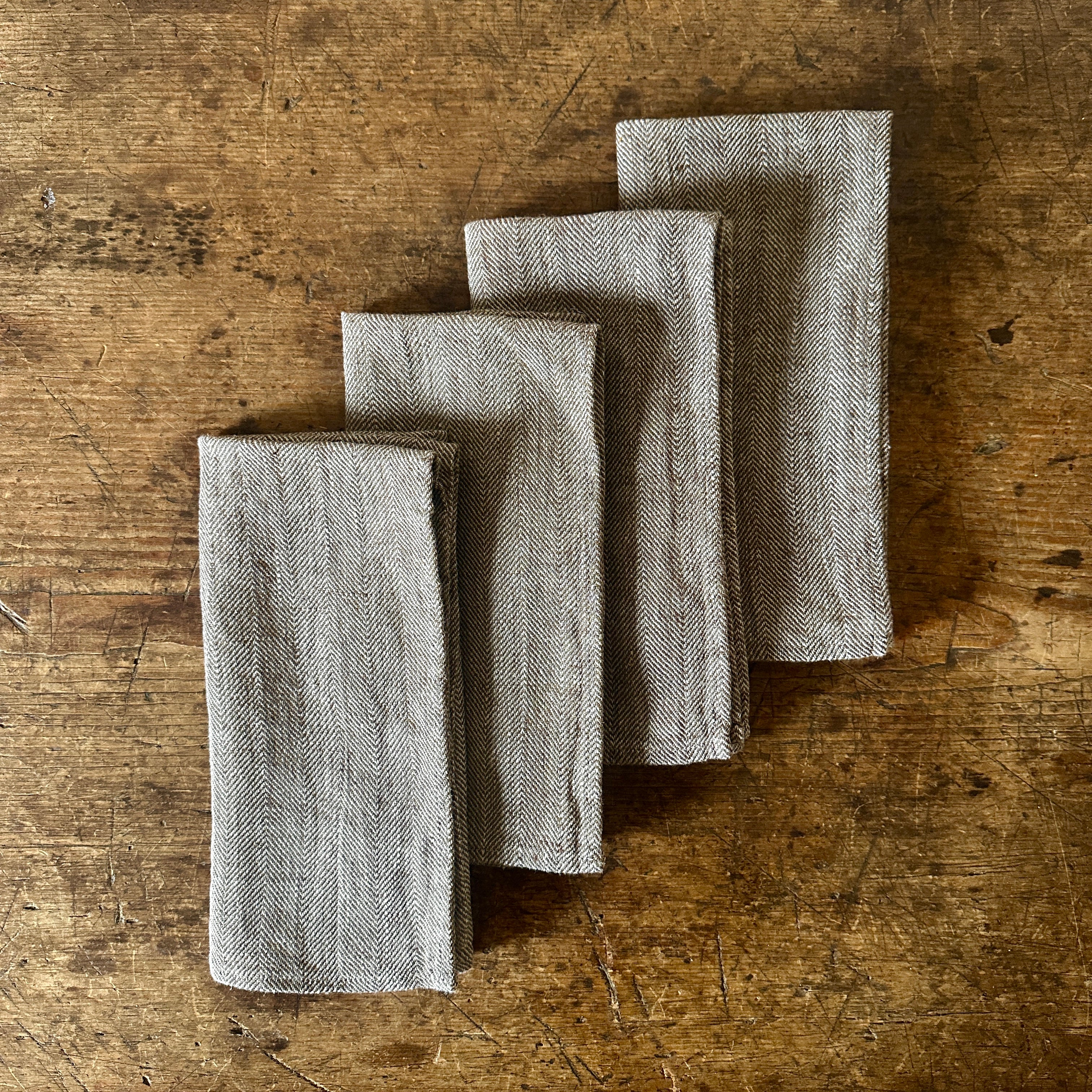These napkins in chevron stripes with a herringbone weave are a versatile classic design in pre-washed super soft linen.