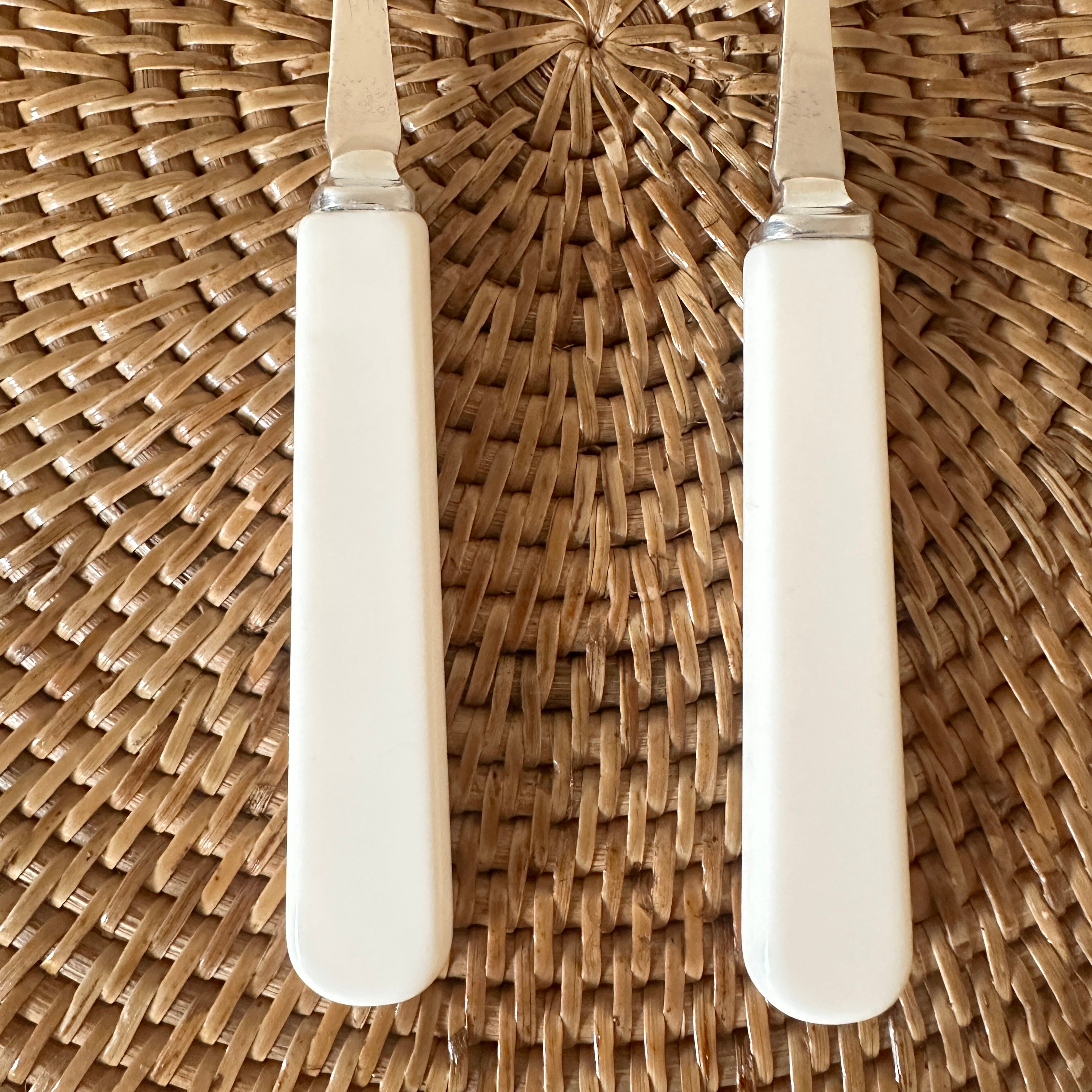 Elegant salad server set with cream handles.