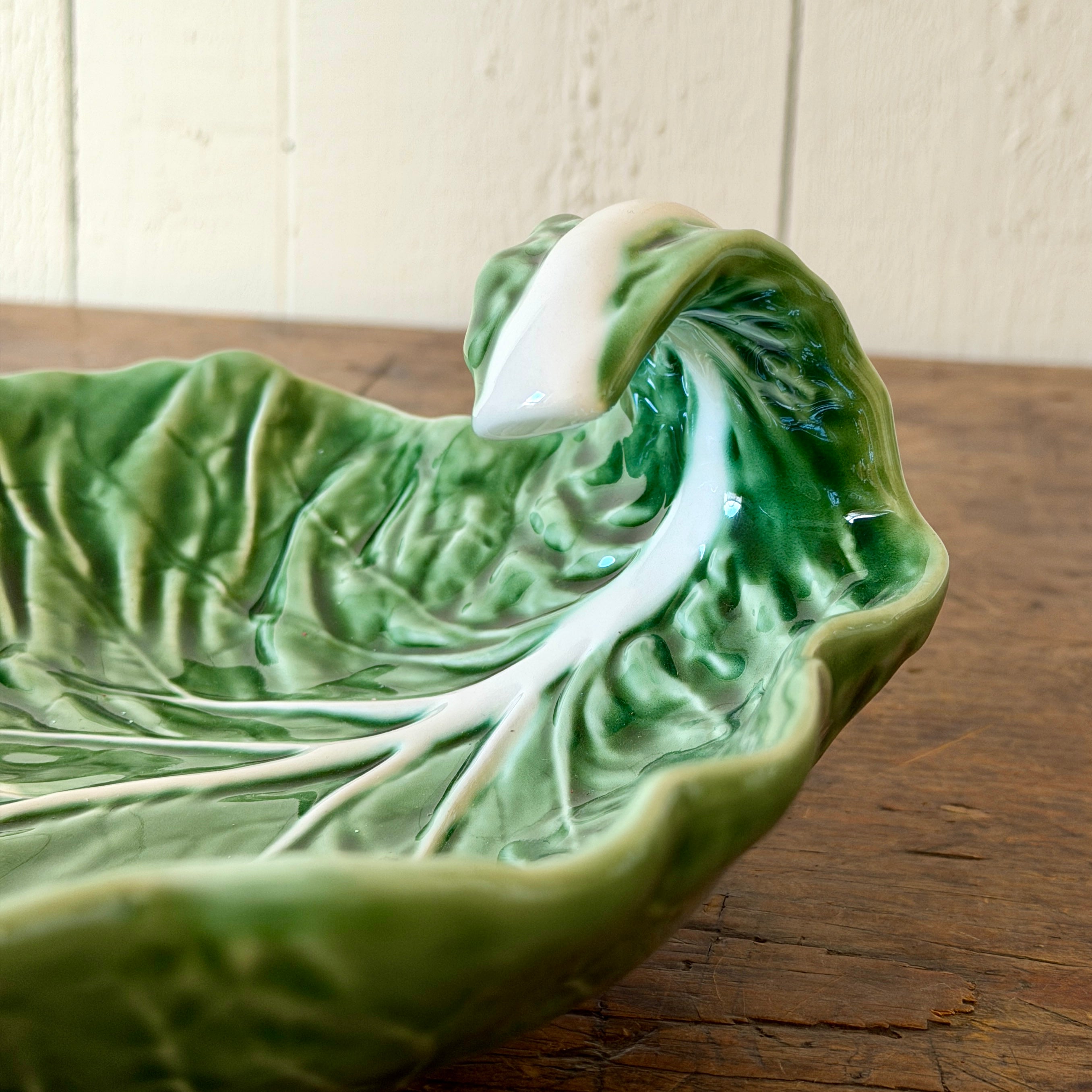 Cabbage dinnerware was designed in 1884 by Raphael Bordallo Pinheiro, a talented artist and ceramicist. He gained acclaim for his art pottery first, then began creating molds of his flora and fauna forms, which allowed him to produce his pieces in larger quantities from a Portuguese factory. The current pottery remains true to the original designs and traditional manufacturing techniques, while staying current from both an aesthetic and technical level.
