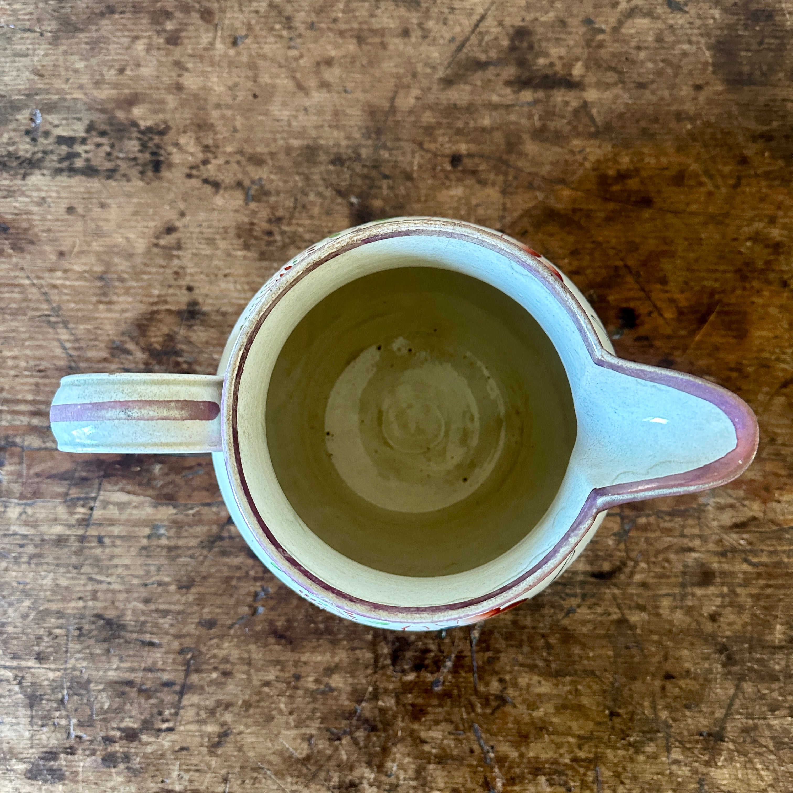 A beautiful pearlware jug decorated with hand-painted color enamel flowers and the inscription "George & Christina Smith Brough 1846".