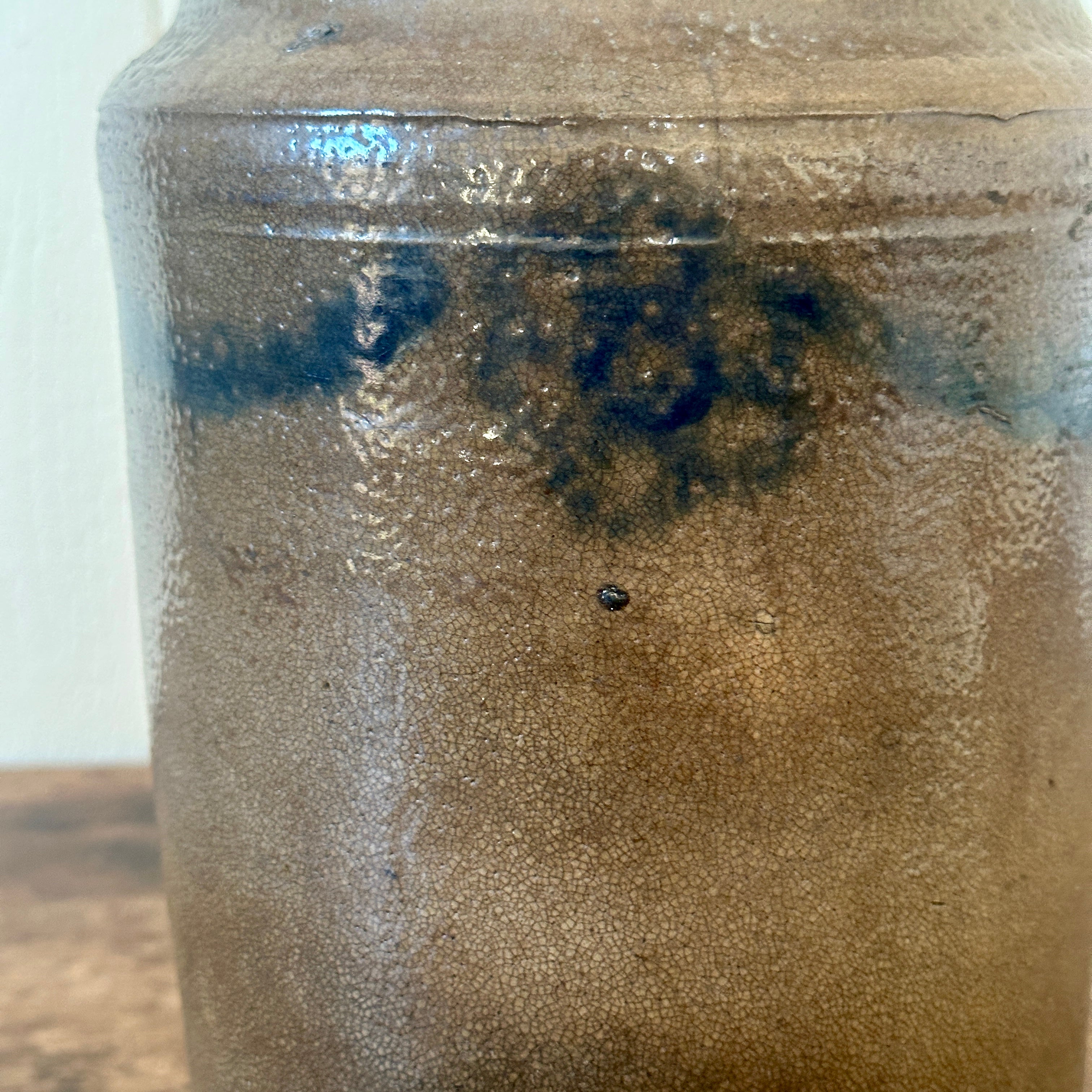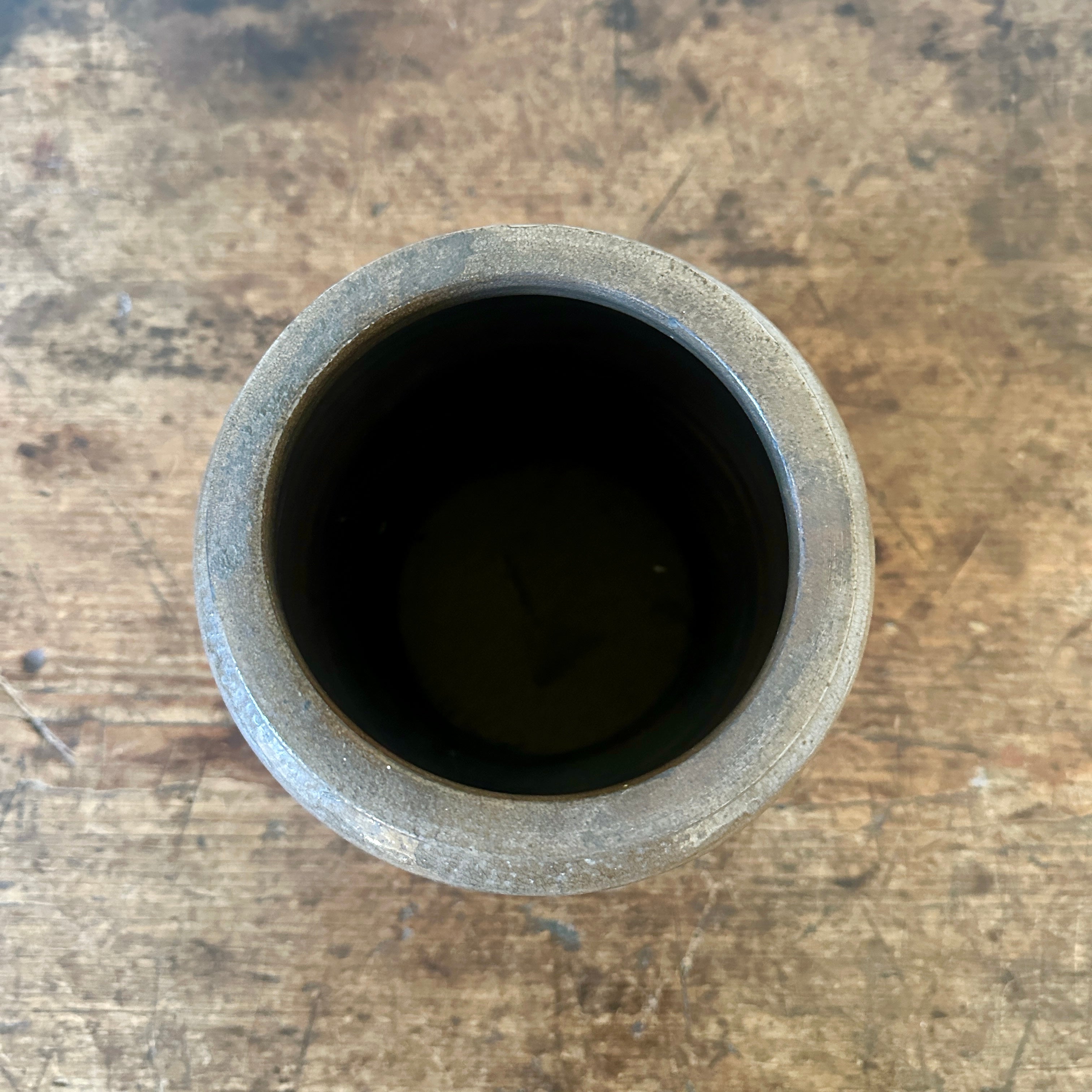 It's difficult to capture the beauty of this crock's color and glaze in a photo. Its dark, taupe-y color is wonderfully moody; the clear glaze gives it a shine that makes it come alive. The crock makes a statement on its own; filled with flowers set against its dark color, it would be exquisite.