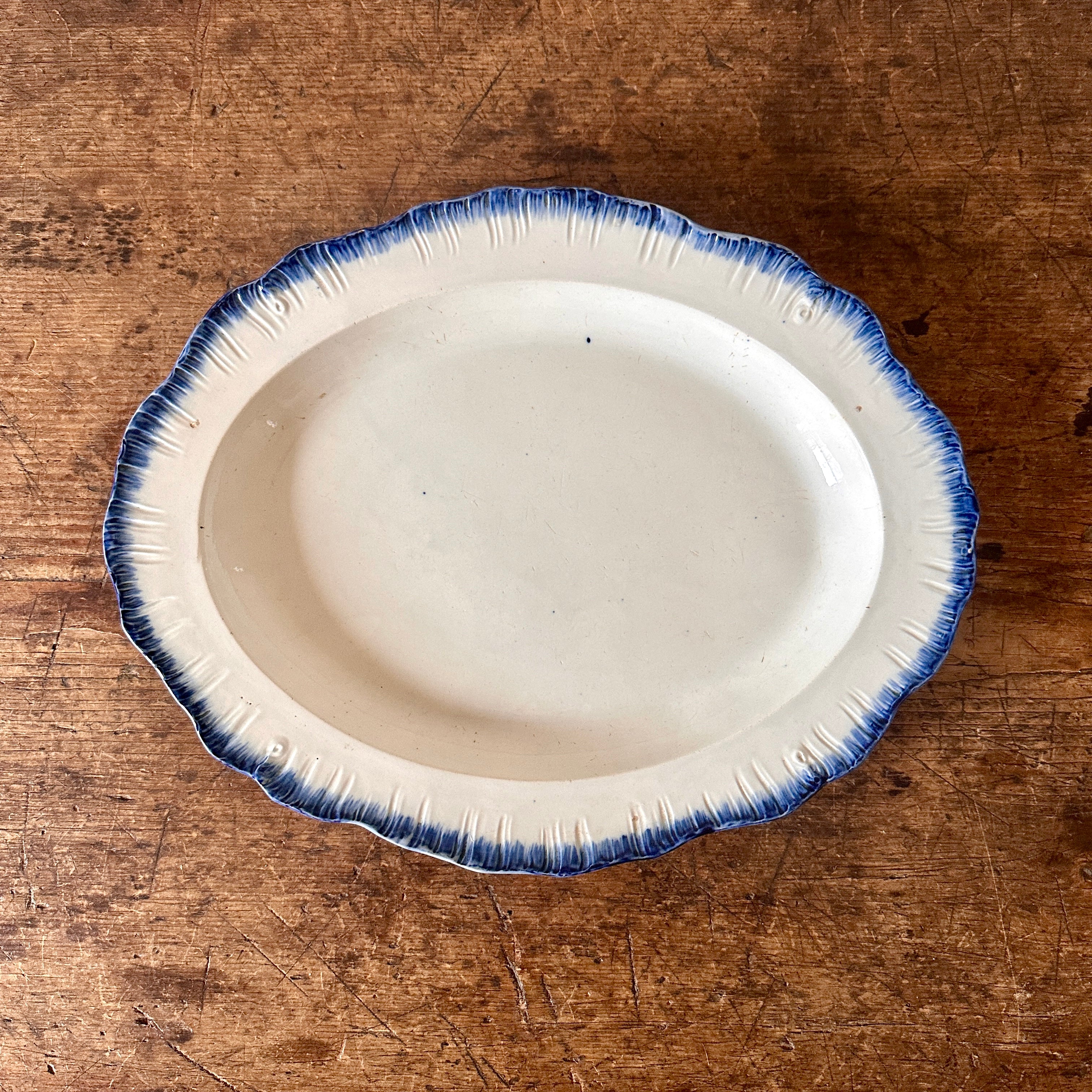 Platters are so useful to have for entertaining and this blue and white Leeds platter will be a staple. This one is very pretty, a fine and elegant shape with excellent color. In very good antique condition.