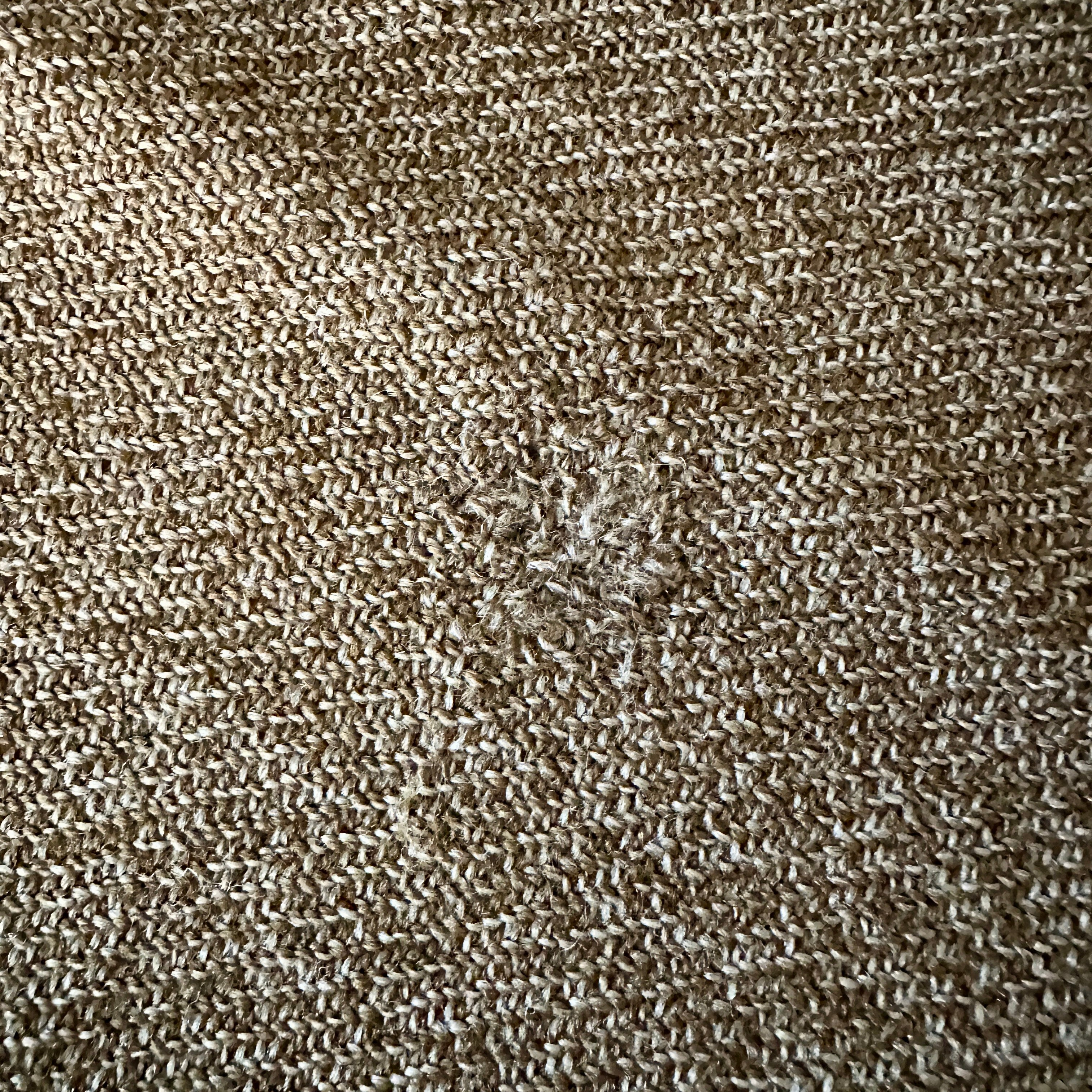 A lovely, cozy olive green and cream vintage throw. A few patches and pulls...see photos.