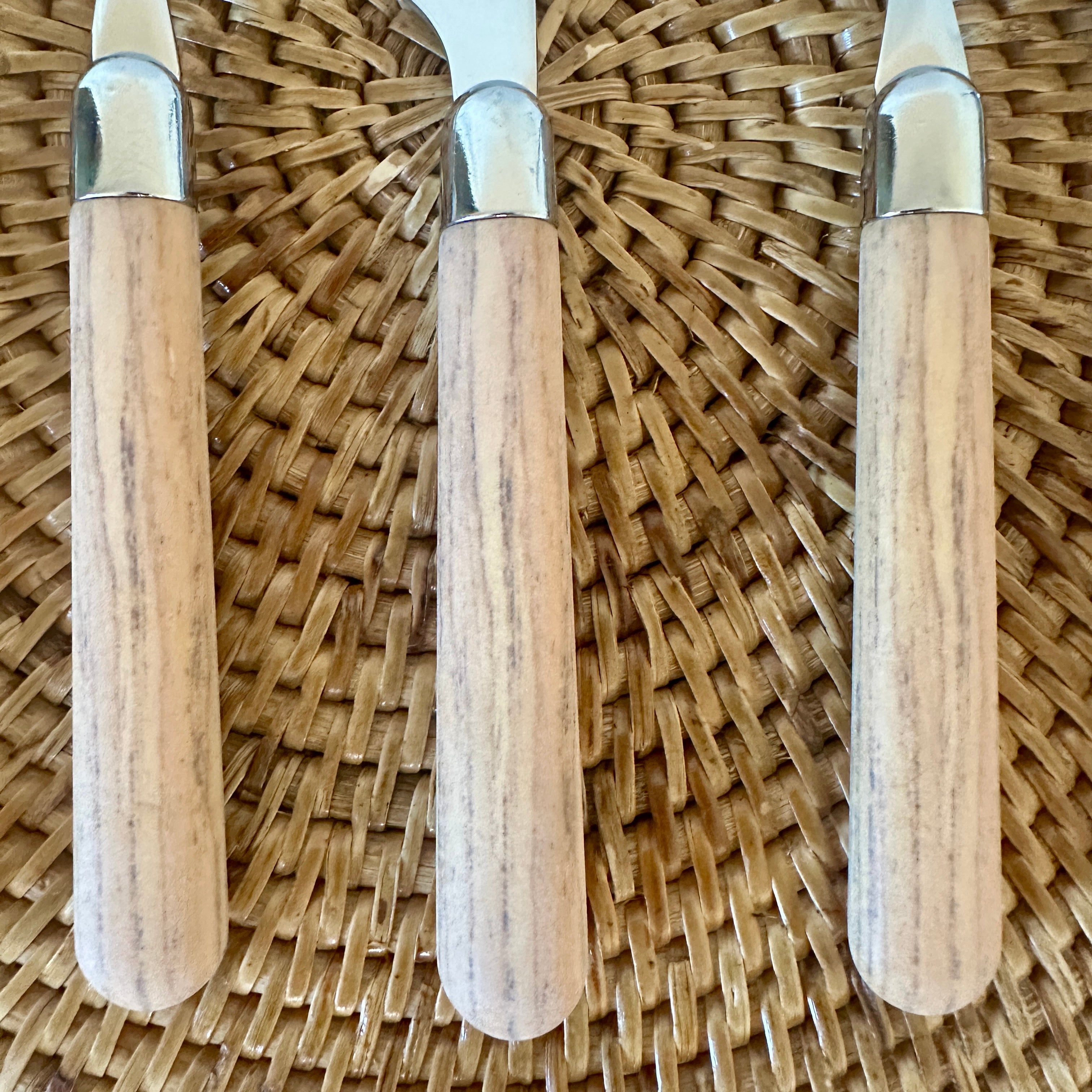 This five-piece place setting features warm faux oak wood handles, with the strength of high-grade resin and 18/10 stainless steel. The best part? The look of wood with no hand-washing!