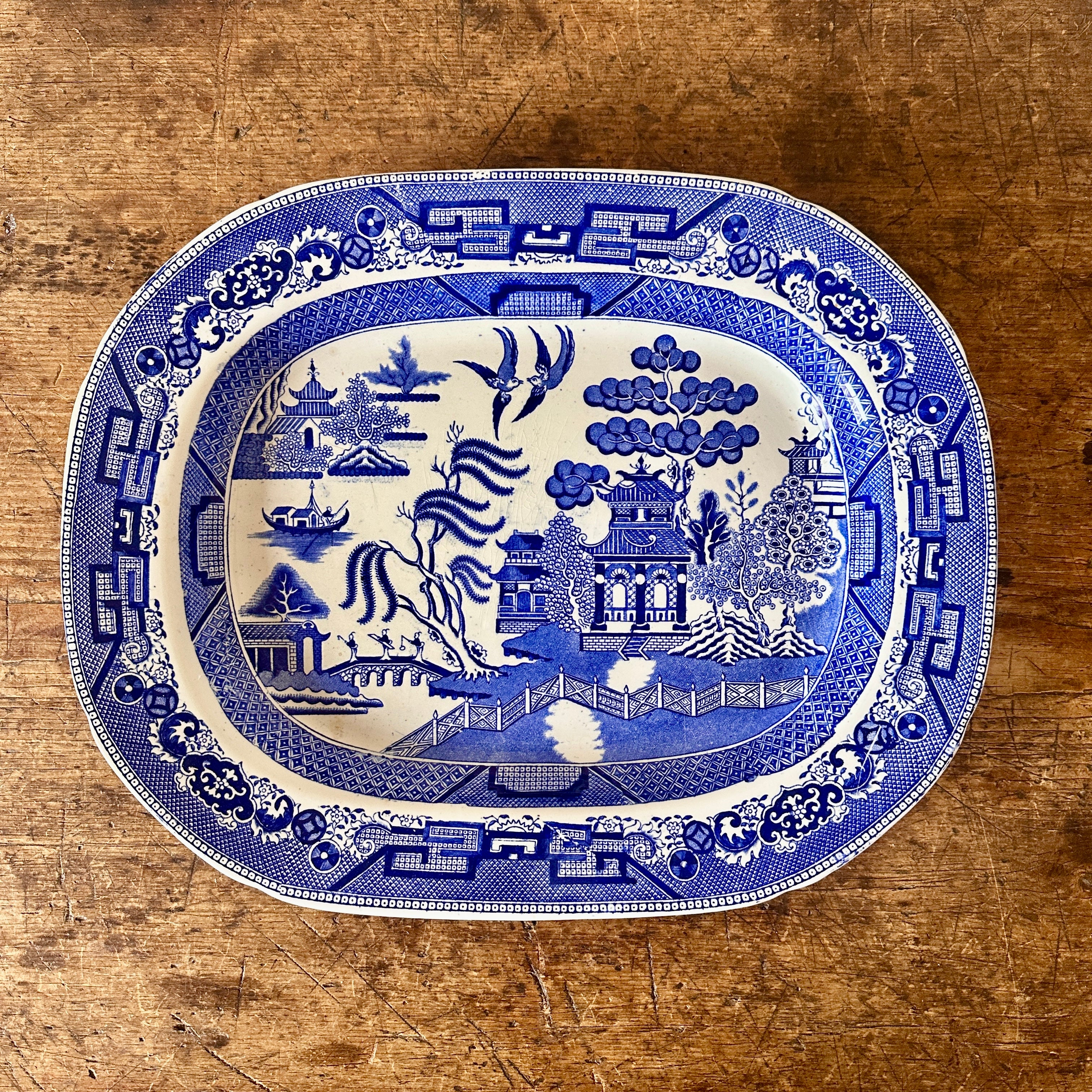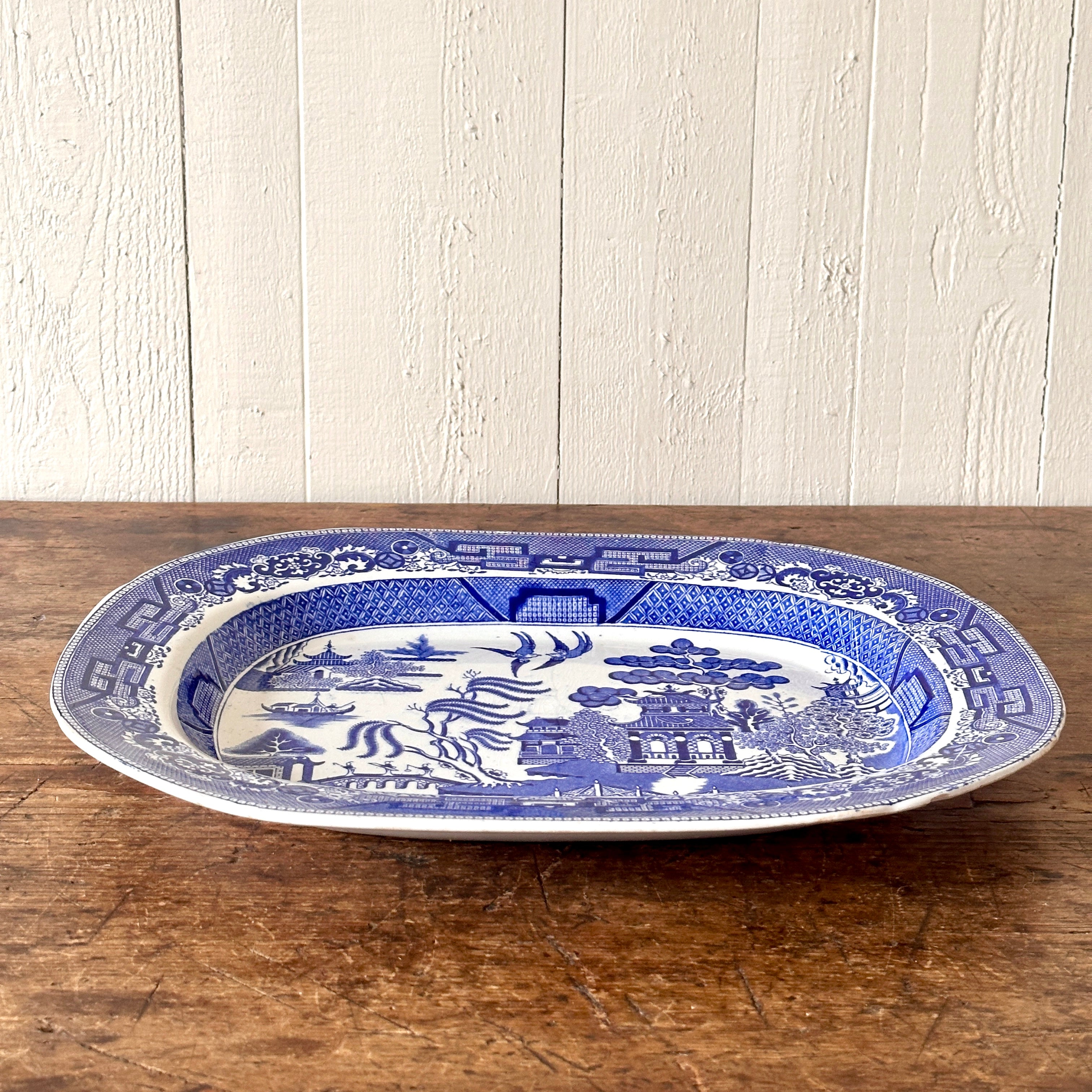 Antique English Willow platter...a go-to essential for year round entertaining in classic blue and white.