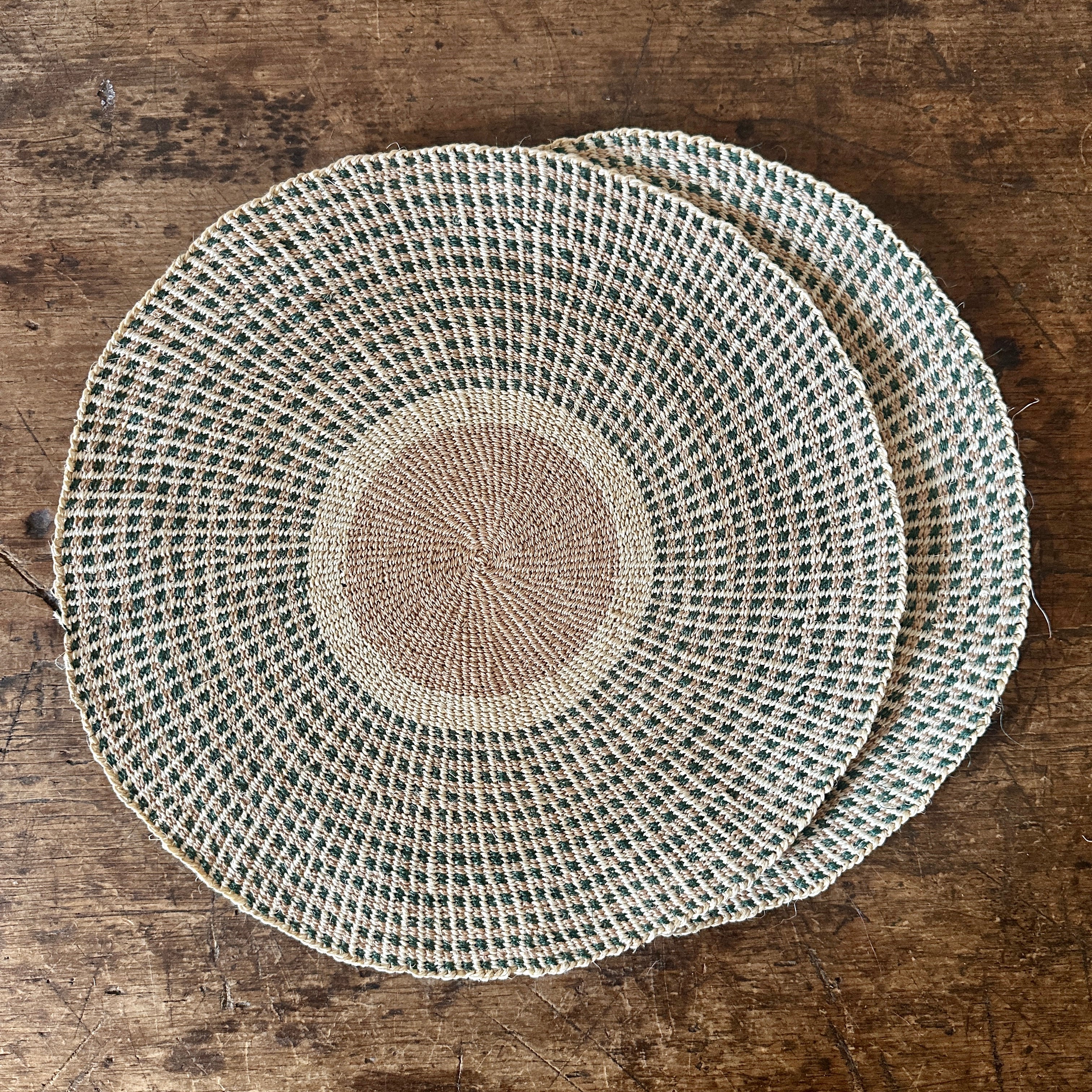 These fine weave round sisal placemats are handmade by traditional Taita artisan weavers. Their charm will add depth and texture to your table.