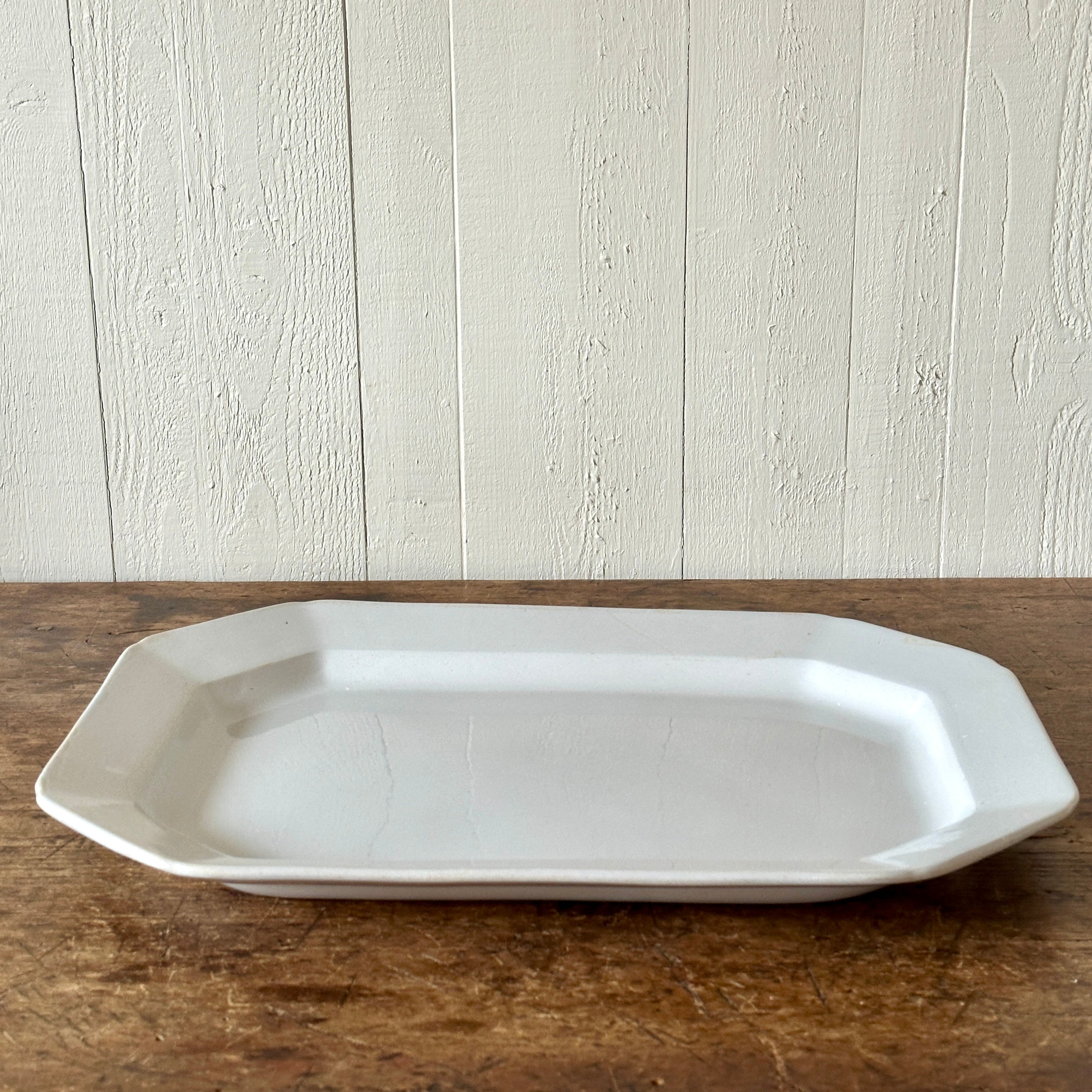 A generously-sized ironstone platter with elegant cut corners. In very good antique condition with some slight glaze imperfections.